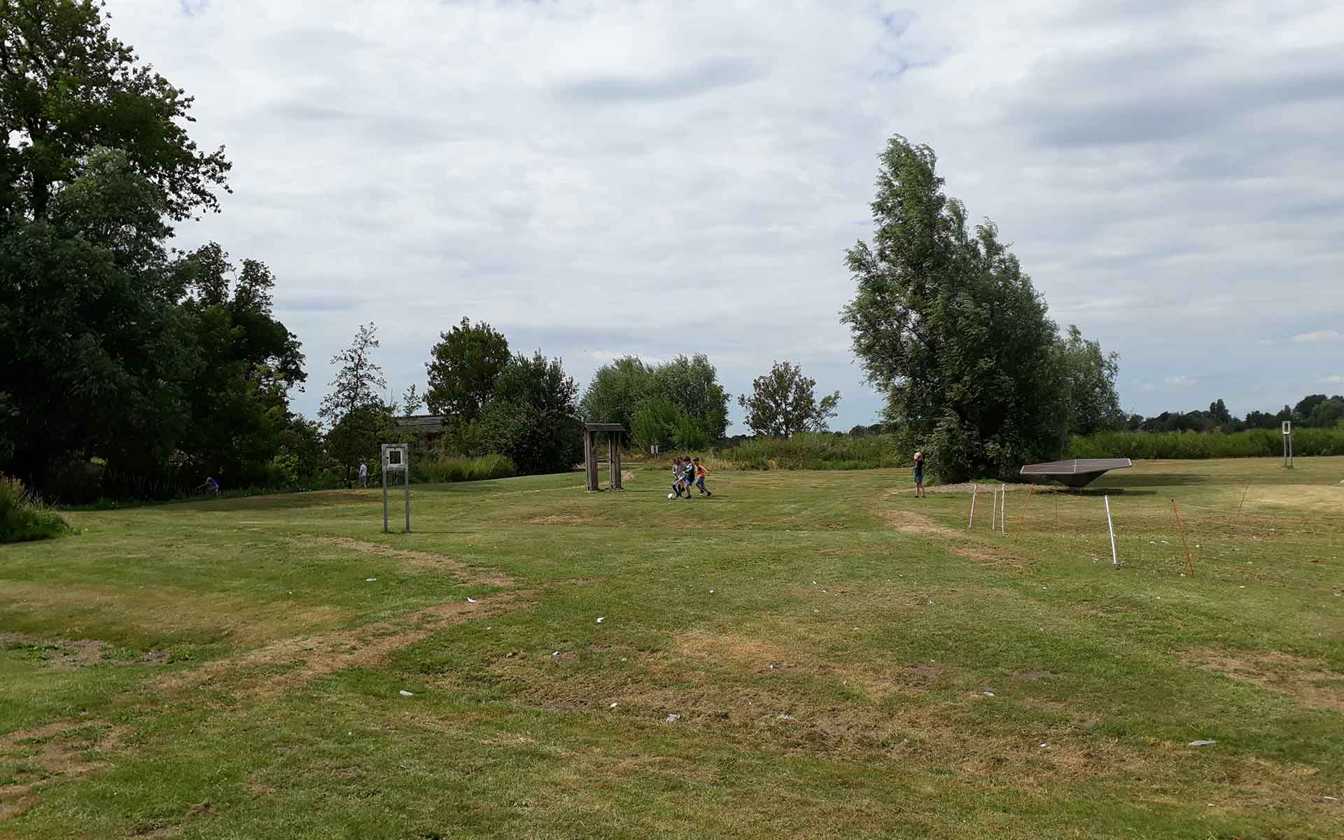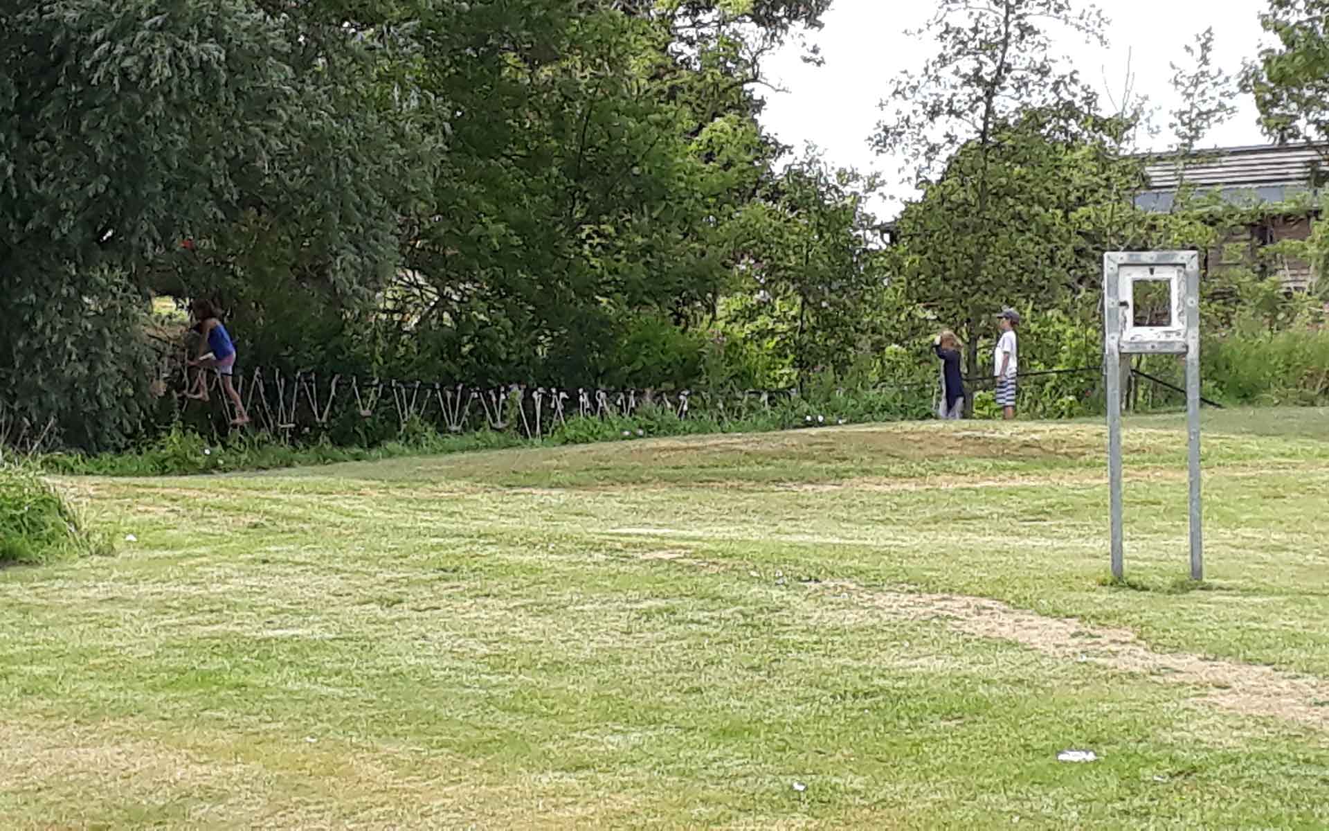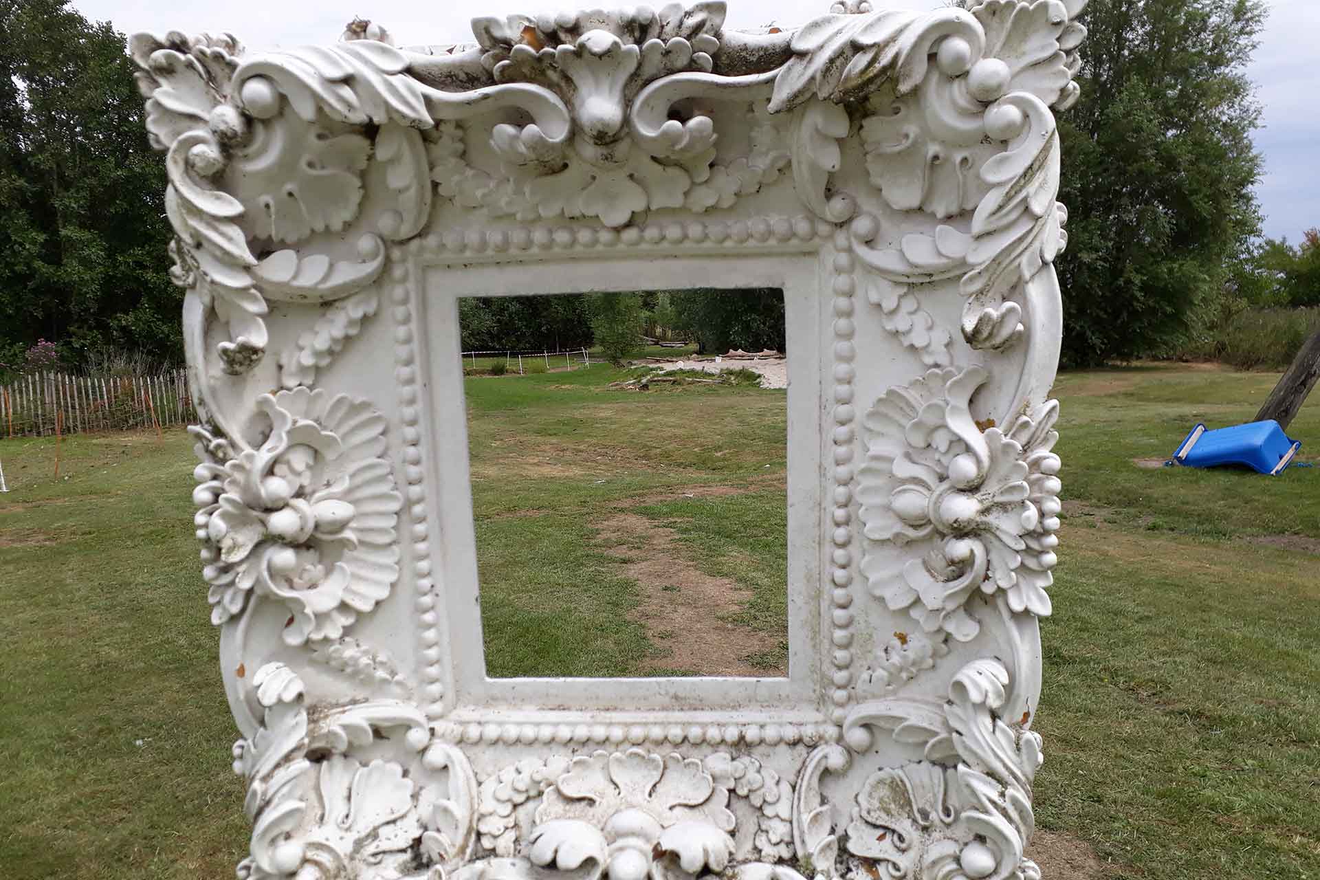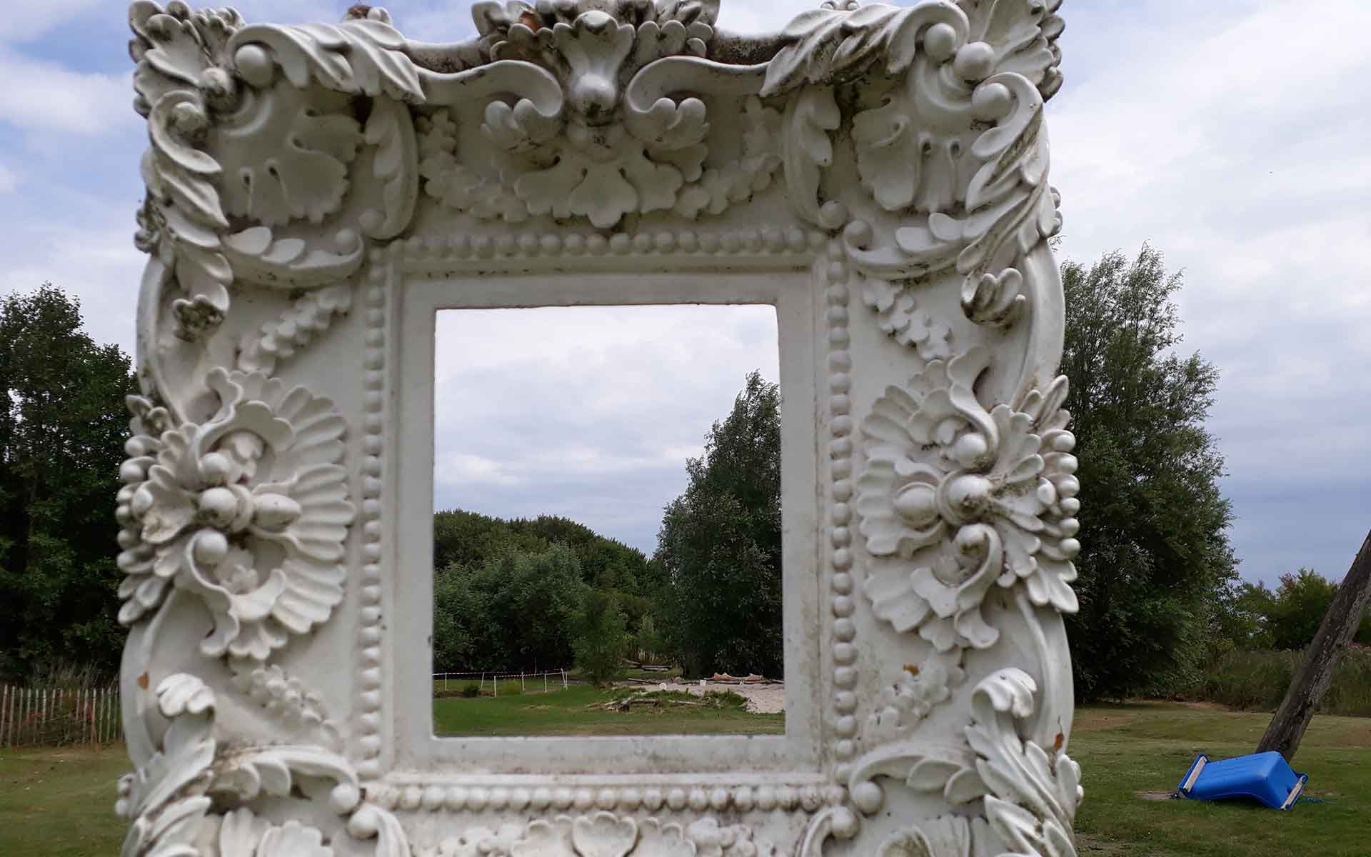 Deswegen stehen schmuckvolle Bilderrahmen im Erfahrungsfeld, die in Richtung Landschaft zeigen. Beim Durchsehen erkennt jeder ein anderes Motiv, je nachdem, welche Sichtweise der Betrachter hat. Kinder sehen oft den Himmel und Bäume, wobei die Größeren eine Wiese oder einen Sandplatz erkennen.
