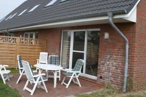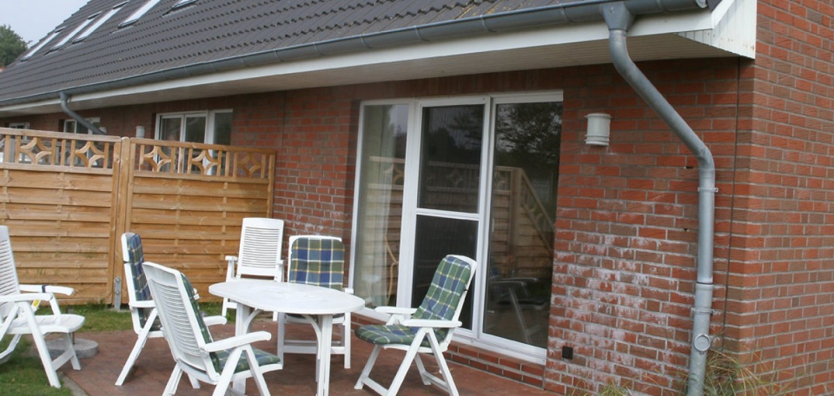Auf der Terrasse mit Gartenmöbeln können Sie den Tag ausklingen lassen. Dieses Haus liegt in unmittelbarer Nähe der Reitanlage Dreililien.
