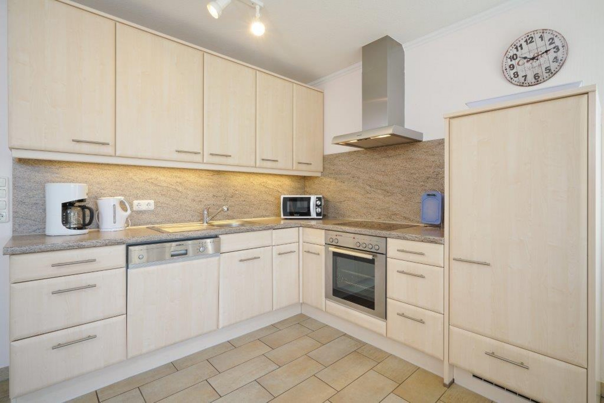 Das Objekt ist ca. 80 qm groß, verfügt über 2 Etagen und ist im dänischen Stil eingerichtet. Fußbodenheizung und WLAN sind vorhanden. Der Wohn- und Essbereich überzeugt mit u. a. Flachbildfernseher und Stereoanlage. In der gemütlichen Atmosphäre sind schöne Abende in Gemeinschaft vorprogrammiert. Die offene Küche ist dem Raum angeschlossen. In den 3 Schlafzimmern träumen Sie vom Strand. Zudem hat das Objekt neben dem Duschbad, ein weiteres Duschbad inkl. Badewanne, ein Gäste-WC und eine Waschmaschine.