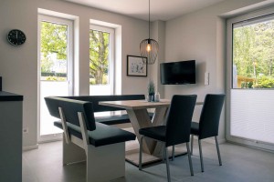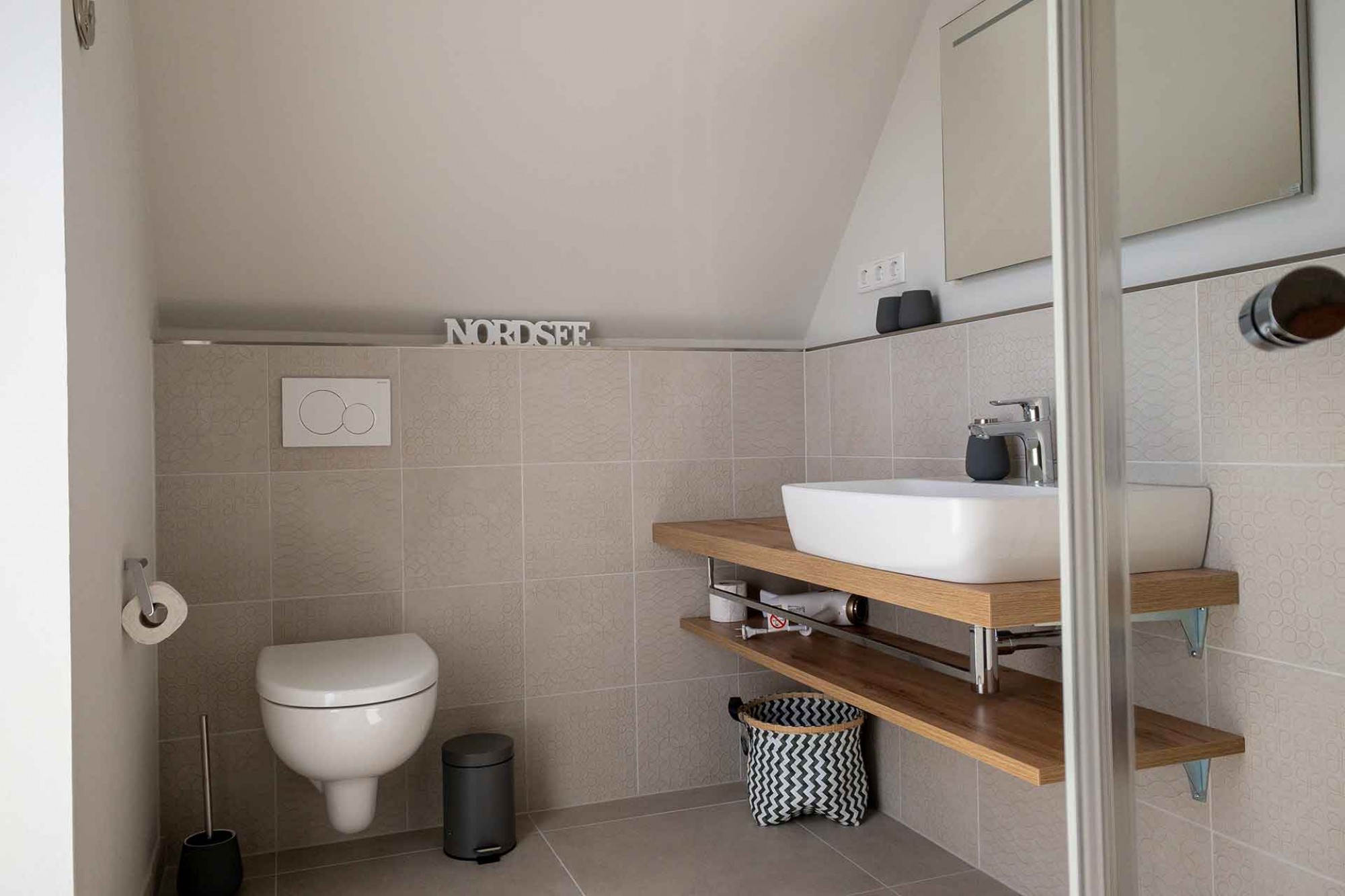 Das ca. 85 qm große Objekt ist sehr hochwertig ausgestattet und bietet Platz für 5 Personen. Machen Sie Ferien an der Nordsee und verzichten Sie dabei nicht auf den Wohnkomfort von daheim. Der Wohn- und Essbereich sind hell und freundlich eingerichtet. Die Küche ist offen und dank der Ausstattung macht das Kochen hier Spaß. In den 2 Schlafzimmern im Obergeschoss bekommen Sie nächtliche Erholung. Genießen Sie die Abende am Kaminfeuer uns lassen Sie die Seele baumeln. Des Weiteren stehen zwei Duschbäder zur Verfügung.