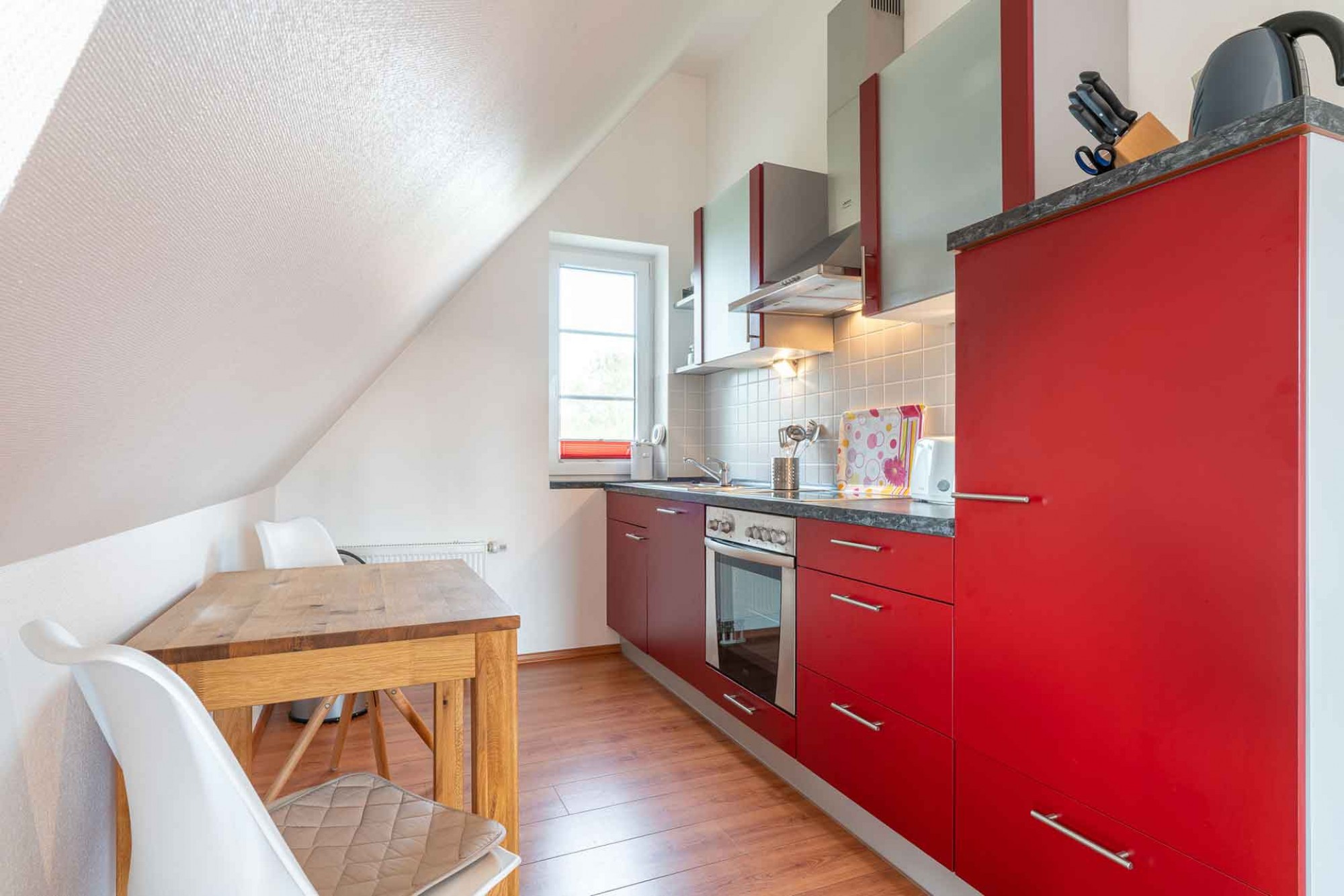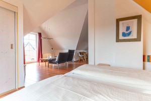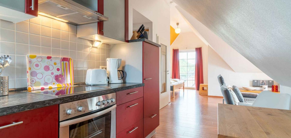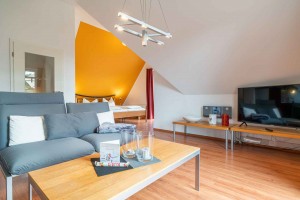 Traumhaftes, gemütliches Ferien-Studio für 2 Personen im Dachgeschoss. Hier können Sie entschleunigen und die Seele so richtig baumeln lassen. Im kombinierten Wohn-, Ess- und Schlafbereich mit einer modernen, offenen Küche und allem Komfort wie Flat-TV, DVD-/Blu Ray-Player werden Sie sich sicher wohlfühlen und eine schöne Zeit verbringen.