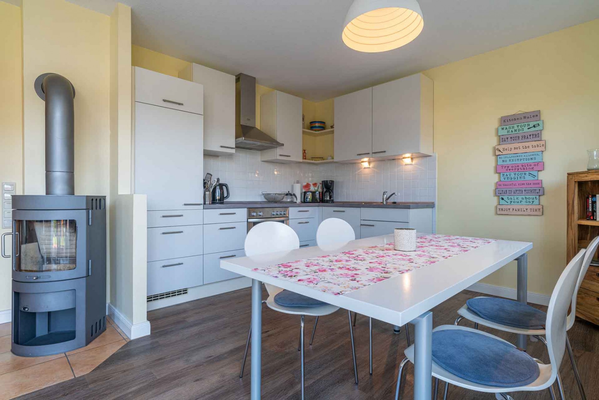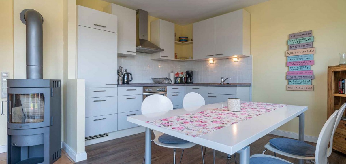 In unserer modernen, hellen Ferienwohnung haben Sie viel Platz für 4 Personen. Der große offene Wohn-/Essbereich mit einer voll ausgestatteten Küche lädt zum Verweilen ein. Hier werden Sie sich sicherlich wohlfühlen und eine schöne Zeit an der Nordsee verbringen.