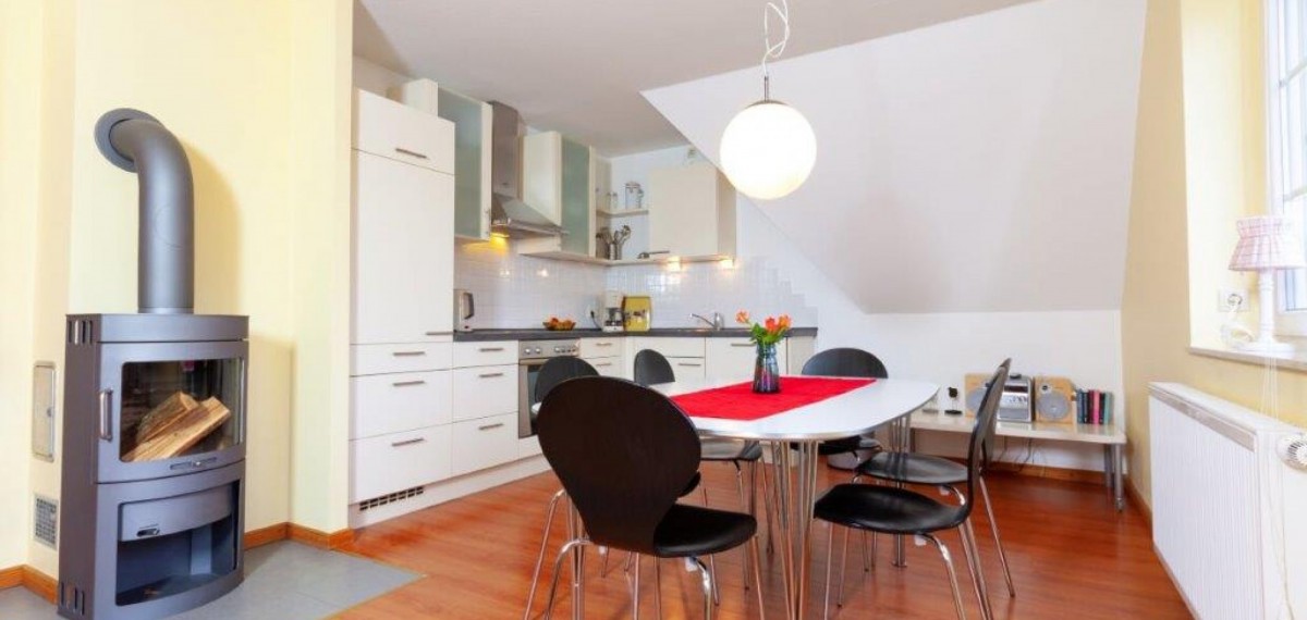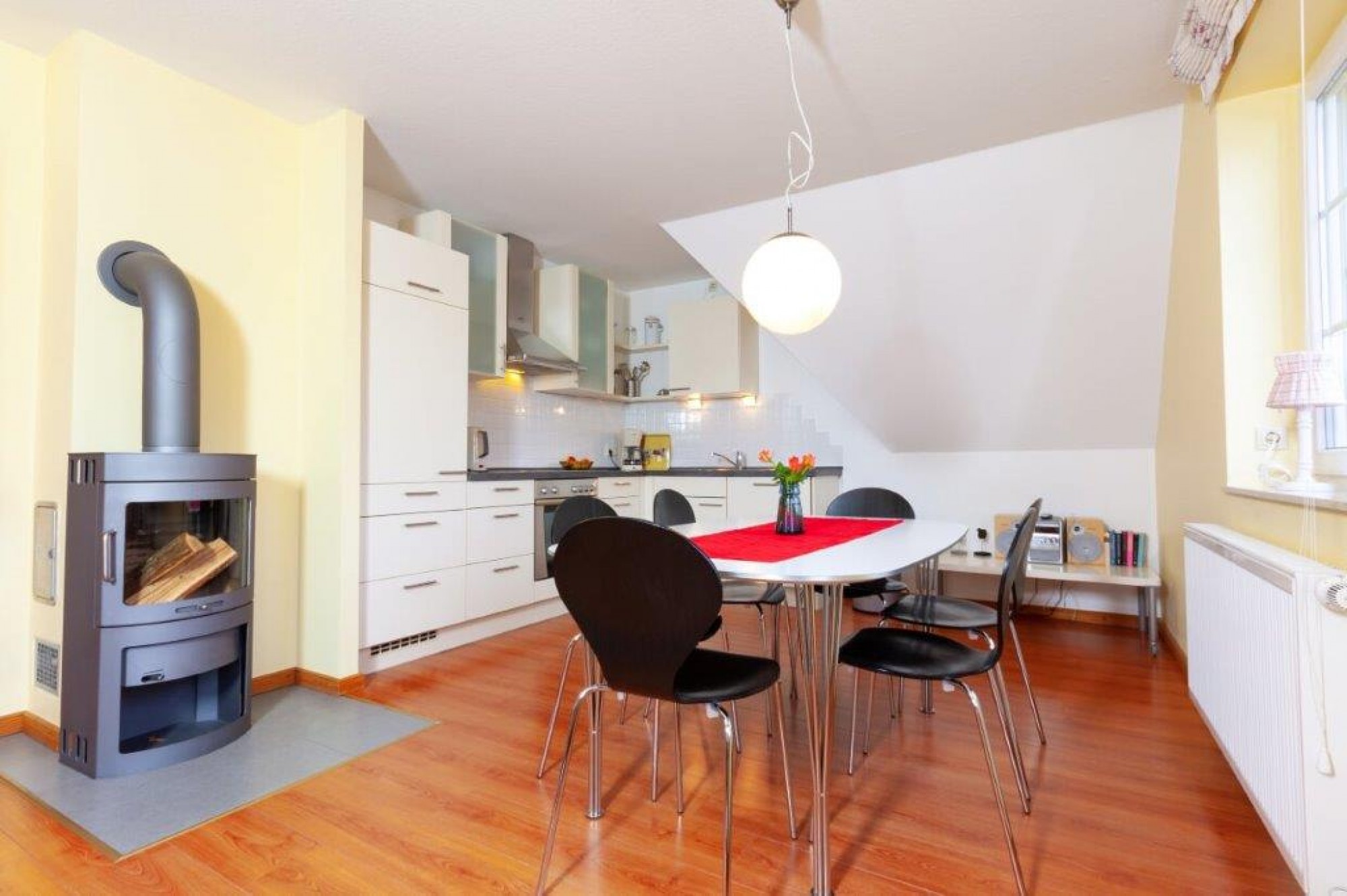 Herzlich willkommen in unserer traumhaft schönen Ferienwohnung im 1. Obergeschoß, die Ihnen allen Komfort bietet, der einen entspannten Urlaub ausmacht. Ein großer und offener Wohn- Essbereich mit voll ausgestatteter Küche bietet viel Platz für die Familie. Sollte sich das Wetter von seiner kühleren Seite zeigen, können Sie es sich vor dem knisternden Kaminofen so richtig gemütlich machen.